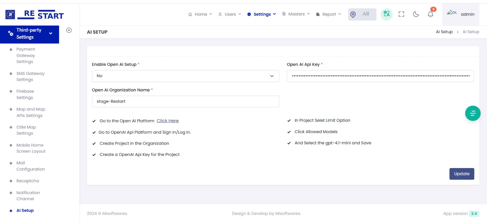 In the Admin Management menu, you can create new admin users and assign them to specific service locations. The super admin has the ability to create new super admin users as well. Each admin user can create additional admin users with varying privileges tailored to their roles within the system.